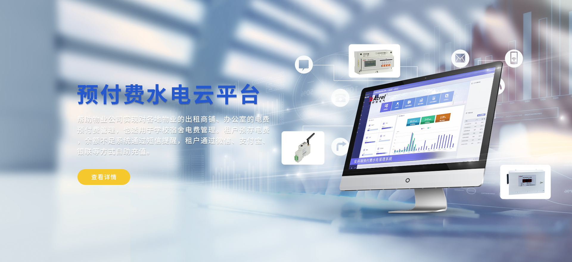 安科瑞提供的解決方案包括Acrel-EIoT能源物聯網云平臺、變電所運維云平臺安全用電管理云平臺環保用電監管云平臺、智慧消防云平臺能源管理云平臺、工業企業能源管控平臺、遠程預付費云平臺、餐飲油煙監管云平臺電動汽車/電瓶車充電樁收費管理云平臺、電力監控/無線測溫系統、電能質量治理系統、電氣火災監控系統、消防設備電源監控系統、防火門監控系統、應急照明和疏散指示系統、智能照明控制系統、醫用隔離電源絕緣監測系統等,幫助用戶實現能源智能化、可視化、精細化管理,提高用能效率和用能安全,為企業節能降耗和實現能源數字化建設提供數據服務。